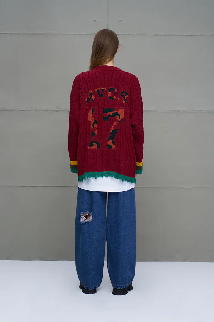 Burgundy Logo Print Oversize Knit Cardigan